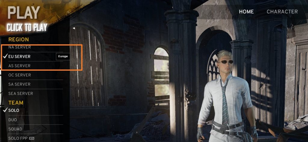 В моем случае, наименьший пинг на серверах Europe, следовательно, для наиболее комфортной игры, я выберу сервер EU.