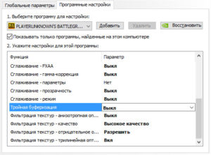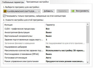 - Управление параметрами 3D > Программные настройки > Ищем в выпадающем списке PUBG