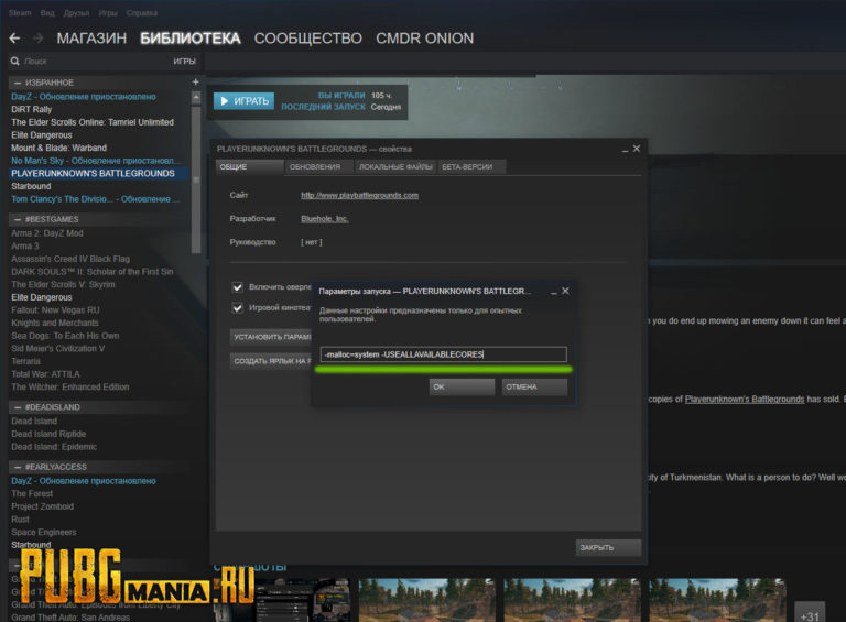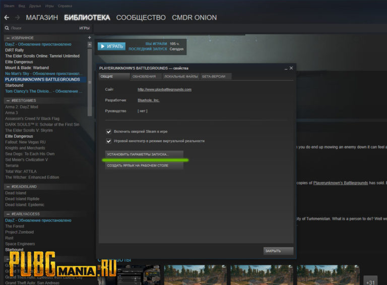 - Нажать правой кнопкой мыши на PUBG в STEAM