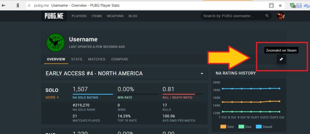 Итак, нам известен ник игрока, как же связаться с ним через стим? Выход есть. Сервис статистики PUBG.ME позволит нам найти стим игрока по нику в PUBG.