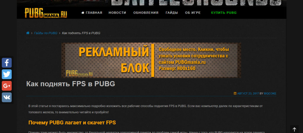 Фан-сайт PUBGmania.ru начал свою деятельность с 1 августа 2017 года. Весь контент на сайте несет информационный характер. Основная аудитория — игроки PLAYERUNKNOWN’S BATTLEGROUNDS.